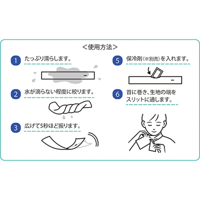 スリットに差し込んでさっと巻くだけ、接触冷感とUVカット生地で日焼け防止に。保冷剤を入れるポケット付きでより涼しく過ごせます。暑いときは何度でも濡らしてクールタオルとしても使えて便利です。パッケージのポーチは収納ケースとして使えるので持ち運びも簡単です。