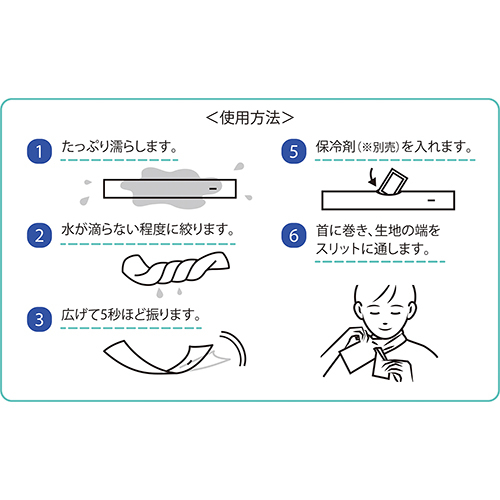 スリットに差し込んでさっと巻くだけ、接触冷感とUVカット生地で日焼け防止に。保冷剤を入れるポケット付きでより涼しく過ごせます。暑いときは何度でも濡らしてクールタオルとしても使えて便利です。パッケージのポーチは収納ケースとして使えるので持ち運びも簡単です。