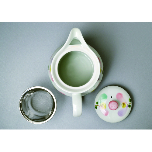 ●磁器、茶こし:ステンレス鋼●口径9×全幅16.5×全高11.5m●500ml●430g●日本製※手描きのため、色柄など多少異なります。食洗機は使用できません。茶こしは電子レンジには使用できません。