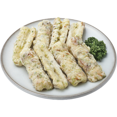 焼ちくわに国産のアオサを混ぜた衣をつけて揚げました。温めるだけで手軽に食べられます。お弁当のおかずに、麺類のトッピングに。
