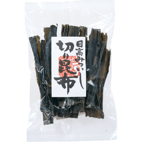 日高昆布の“切り葉”という短いサイズを袋詰め。通常品よりサイズは不揃い。利用しやすい価格で取組みます。