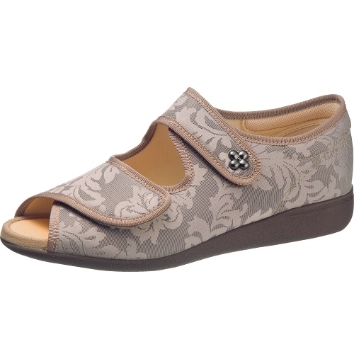 快適歩行機能つきのサンダルです。甲部分のベルトは2本共面ファスナーで足に合わせられます。