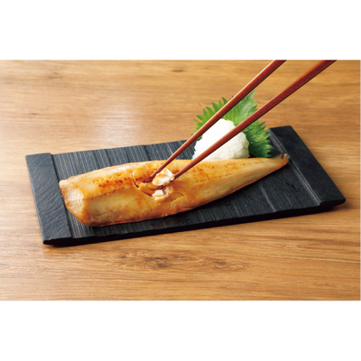 北海道・礼文島香深(かふか)で獲れたほっけを3枚におろし、腹骨をとって提携先の昆布醤油ダレに漬け遠赤外線で干し上げました。淡白なほっけを昆布醤油に漬け込むことで食べやすく仕上げています。解凍してグリル等で焼くだけ。