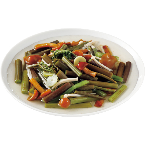 わらび(国産)、みず(国産)、なめこ(国産)、えのき茸(国産)、細筍(国産)/pH調整剤(クエン酸)