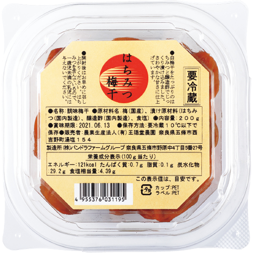 梅(国産)、漬け原材料(はちみつ(国内製造)、醸造酢、食塩)