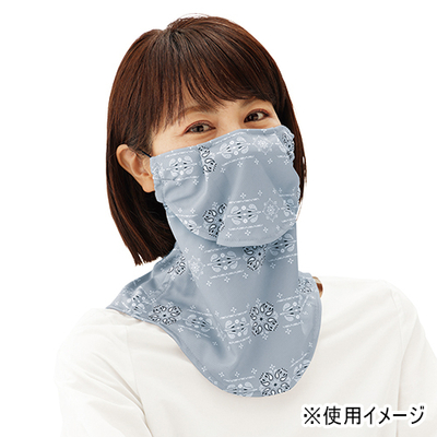 開口部ありで息がしやすい、接触冷感でクールにカバーするフェイスクーラーです。目の下から首までしっかりとUV対策します。