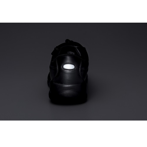 4E設計ですが、すっきりとしたシルエットと、光沢のあるデザインのウォーキングシューズです。軽量で、外ファスナー付き。脱ぎ履きのしやすさも魅力です。