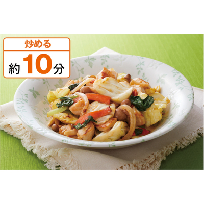 鶏肉と野菜を炒めて準備したマヨポンソースで炒めるだけ。鶏むね肉に豊富な動物性たんぱく質とキャベツに含まれるビタミンCは、小松菜に含まれる鉄の吸収率を高めてくれます。2〜3人分。調理時間:約10分。家庭で用意するもの:なたね油大さじ1、マヨネーズ大さじ1。調理法:炒める※使い切りのセットです。レシピ付き。必ず加熱してください。消費期限はお届け日の翌日です。