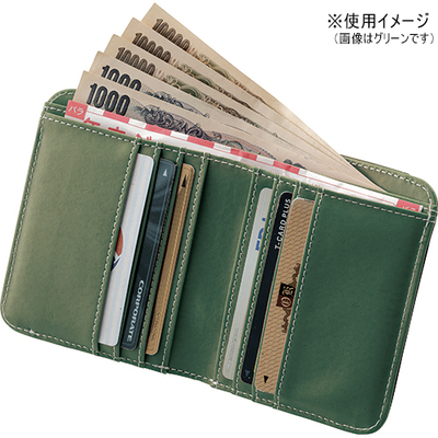 ●牛革・合成皮革・ポリエステル●縦9.5×横11×厚2.5cm●85g●開閉ホック式小銭入れ×1、札入れ×2、カード入れ×6、オープンポケット:外側×2、内側×2●中国製※素材感を生かすため、色落ちする場合があります。