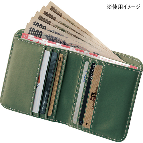 ●牛革・合成皮革・ポリエステル●縦9.5×横11×厚2.5cm●85g●開閉ホック式小銭入れ×1、札入れ×2、カード入れ×6、オープンポケット:外側×2、内側×2●中国製※素材感を生かすため、色落ちする場合があります。