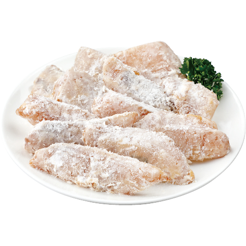 主に紀州沖で獲れたシイラを切り身にし、生姜醤油で下味を付けてばれいしょでん粉で衣付けしました。薄めの味付けなのでお好みでマヨネーズやポン酢をかけたり、あんかけ等で野菜と合わせるのもおすすめです。