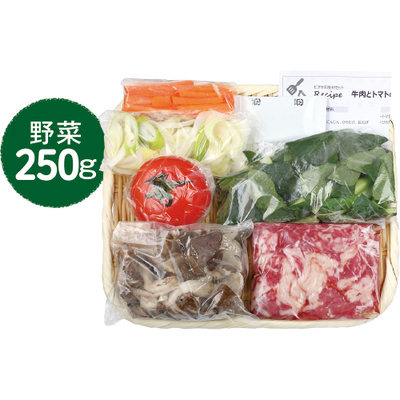 牛肉と野菜を添付の塩だれで炒めるだけ。牛肉や小松菜には貧血予防に大切な鉄が豊富。トマトや小松菜などに含まれるビタミンCが鉄の吸収率を高めてくれます。2〜3人分。調理時間:約10分。家庭で用意するもの:なたね油大さじ1。調理法:炒める※使い切りのセットです。レシピ付き。必ず加熱してください。消費期限はお届け日の翌日です。