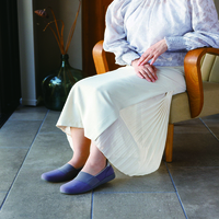 ゆったり3Eで、 手を使わずハンズフリープで履けます。靴底には軽量のラバーを使用し 足の負担を軽減。つま先、かかとが巻き上がった仕様でつまずきを抑える底意匠です。体重移動をコントロールして歩行をサポ-ト。着地や蹴りだしもスムーズです。