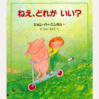 30年以上も愛され続けているロングセラーの一冊です。タイトルの「ねえ、どれが いい?」のとおり、究極の質問に答えながら読み進められる楽しい絵本です。絵本に出てくる選択肢が奇想天外で、聞いている子どもたちも興味津々。最後は、「自分のベッドで眠りたい?」と終わるので、お休み前の絵本にもすすめです。(春)