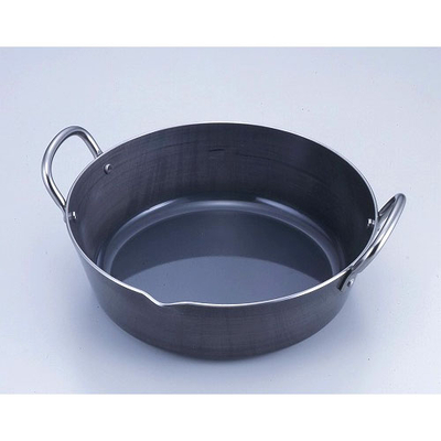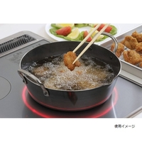 業務用の揚げ鍋を家庭用にリサイズした重厚な作り。熱が分厚い鉄板に蓄熱されるので食材を入れても油の温度が下がりにくく、揚げ物がベタつかずサクッと仕上がります。油の移し替えに便利な注ぎ口付き。