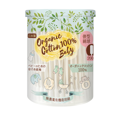 オーガニックコットン100%の綿球だからお肌に優しいソフトな使いごこちで赤ちゃんの敏感なお肌にも安心です。農薬や化学肥料を使用せず、手間隙かけて育て上げた安全な綿です。赤ちゃんの小さな耳に優しい俵型の綿球です。