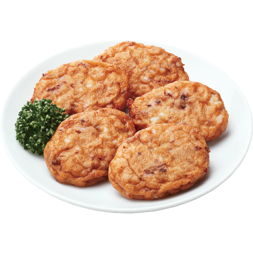 たらの無リンすり身に真いかのゲソ、干しいか、玉ねぎを練り込んで揚げました。