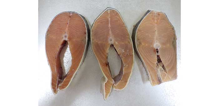 原料に天然の秋鮭を使用しています。そのため、秋鮭が食べる餌や環境などにより、個体差が生じ色味が変わりますが、品質に問題はありません。