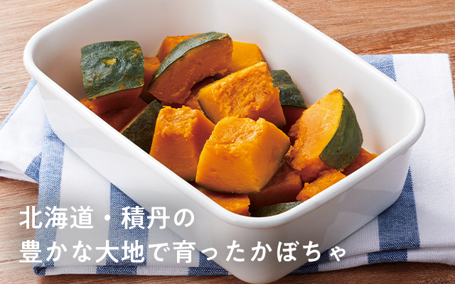 袋のまま電子レンジで温めるだけで簡単に蒸しかぼちゃが作れます。調理方法は袋に記載していますが、加熱時間は機種によって調整してください。