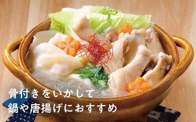 手羽先の手羽元に近い方を、骨が一本ずつになるように縦にカット。骨付き肉の旨みが手軽に楽しめます。塩・胡椒などでシンプルに味付けし、グリルやオーブンで焼くだけで美味。【鶏肉の特徴】国産鶏種の「丹精國鶏」です。エサは遺伝子組み換えの混入を防ぐために分別した穀物や、国産飼料用米を与えています。原則として抗菌性物質を与えずに育てています。