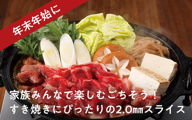 モモやカタなど脂身が少ない部位を中心に約2mm厚にスライス。【牛肉の特徴】エサの牧草や干し草は北海道内で自給し、肥育期に与える配合飼料のトウモロコシは遺伝子組み換えの混入を防ぐために分別したものです。生後10ヶ月以降は抗菌性物質不使用。