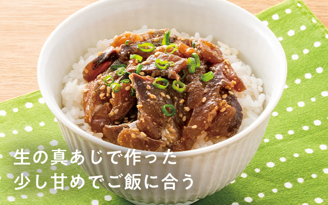長崎県産の真あじを醤油や胡麻を加えた甘めの調味液で味つけました。骨取りです。おかずや丼、酒肴に。2〜3人分。「のもん」とは方言で、製造元の所在地である「野母(のも)のもの」「野母でつくった」という意味です。【生産者のコメント】 対馬から五島西沖で水揚げされる真あじのなかでも、脂のりや鮮度のよいものを厳選し、鮮魚から加工しました。調味液は醤油、砂糖、みりん、酒、胡麻を合わせた少し甘めの味つけです。解凍するだけでおかずになり、ご飯にのせて丼やお茶漬けとしても。長崎県南端の町・野母でつくられた、「のもん」の味わいをおうちでどうぞ。 製造元:(有)藤岡水産 藤岡 大地さん