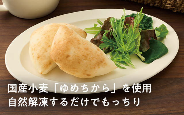 国産小麦を使用。ふわふわと柔らかく、もちもちした食感。自然解凍で約2時間で食べられます。トースターで温めると、自然解凍や電子レンジ加熱よりも歯切れの良い食感に。食事としてはもちろん、アイスやシロップと合わせてデザート感覚でも楽しめます。回転備蓄にも。【生産者のコメント】 朝食やおやつ、デザートにもなる小さめサイズのフォカッチャ。国産小麦のなかでもたんぱく質含有量の多い「ゆめちから」の粉に、オリーブオイルや指定原料の塩を加えて作りました。高温窯を使い短時間で焼きあげることで弾力のある食感がうまれ、オリーブオイルの香りと小麦の甘みを感じられます。自然解凍で食べられます。トースターで温めても。 全国農協食品(株) 鈴木 涼子さん