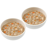 丹精國鶏のムネ肉と国産のきのこ、もち麦入り。常温保管可能。袋を開けてそのままでも。冷やして冷製スープにも。提携生産者の塩、砂糖でシンプルに味つけし、チキンパウダーやブラックペッパーで飽きのこない味に仕上げました。もち麦はやわらかく煮込んでいます。独特のプチプチとした食感がアクセントになり、不足しがちな食物繊維も手軽に摂れます。具材は小さくカットしてあり、とろみをつけているので飲み込みやすく食べやすいです。湯せんで温めるだけ。冷やして冷製スープにも。常温で保存できます。