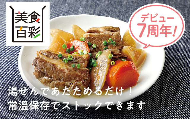 提携生産者の国産牛バラ肉をとろっとやわらかくなるまで煮込みました。国産の大根・人参・ごぼう入り。提携生産者の醤油や白だしなどを使った和風の味付けです。常温で保存できるので回転備蓄にも。賞味期限365日。