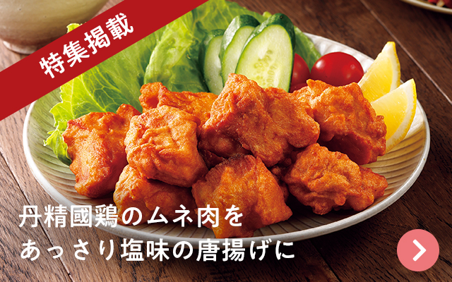 丹精國鶏のムネ肉を使用した塩味の唐揚げ。塩、醤油、砂糖、コショウ、りんご果汁をベースに下味をつけ、衣付けしてなたね油で揚げました。電子レンジで温めるだけで食べられます。お弁当にも。1袋約5〜8個入り。利用促進のため1月4回価格に対し26円引き。