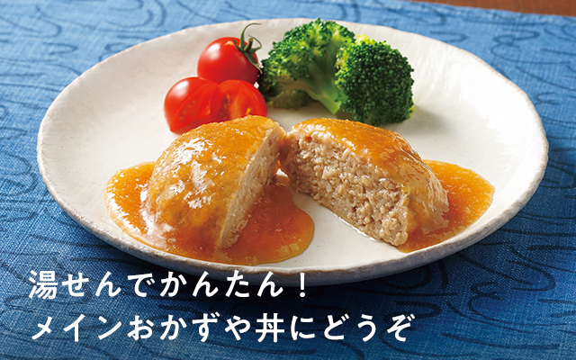 提携先の豚ひき肉に国産のごぼう、玉ねぎなどを合わせて油揚げに詰め、甘めのだし汁で煮ました。油揚げは新潟県産の大豆を使用。味付けには提携先の醤油や塩を使い、ジューシーで風味豊かに仕上げました。ごぼうの食感が楽しめます。電子レンジや湯せんで温めるだけで手軽に食べられます。