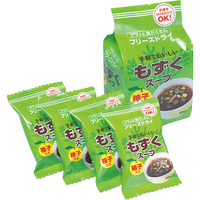 154.4g(たまごスープ(7.5g×4袋)、もずくスープ柚子入り(5.6g×4袋)、味噌汁なめこ(8.5g×4袋)、味噌汁揚げなす(8.5g×4袋)、味噌汁ほうれん草(8.5g×4袋)
