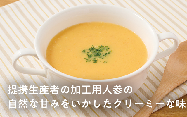 提携生産者の人参濃縮果汁と人参ピューレに牛乳や生クリームバターなどを加えました。クリーミーなコクと味わい。冷やしても温めてもおいしく食べられます。レトルト品。