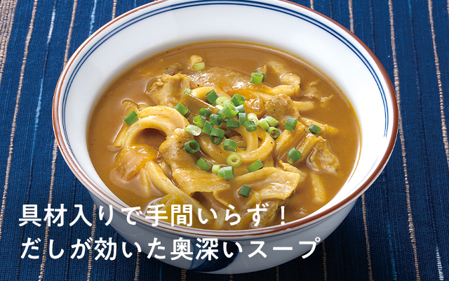 消費材の豚肉、国産玉ねぎ、ねぎを使用。お湯または牛乳を加えて作る和風カレーうどんの具入りスープです。2袋入り。