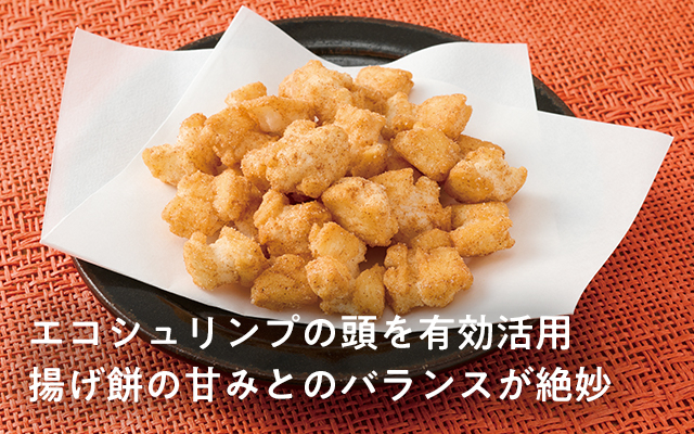 一口サイズの揚げ餅にえび粉末と塩をからめました。揚げ餅には国産のもち米を使用。米油を使って高温で一気に揚げることで、油を吸わせすぎずサクサクとした軽い食感に仕上げました。粉末えびは、エコシュリンプの頭とさくらえびを加工しています。おやつやおつまみに。【生産者のコメント】 エコシュリンプの頭の粉末と塩をまぶした揚げ餅。えび特有のにおいを抑えて加工する方法を独自に開発し、旨みをいかしつつ風味よく仕上げるために桜えび粉末も加えています。国産のもち米を使用した揚げ餅は高温の米油で一気に揚げ、サクサクとした食感に仕上げました。1袋に約96mgのカルシウムが含まれています。おやつにどうぞ。 (株)精華堂霰総本舗 清水 敬太さん