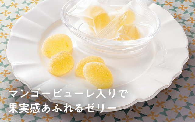 提携先のベトナム産マンゴーを使用した一口サイズのゼリーです。濃厚なマンゴーの風味と、果物からつくったペクチンを使用したほどよい弾力の食感が楽しめます。香料使用。着色料は使用していません。より利用しやすい価格に変更します。