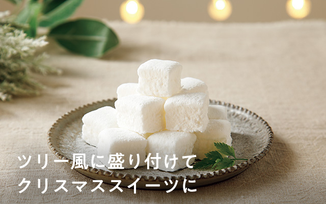 マダガスカル産のバニラビーンズから採ったバニラ香料で香りづけしたマシュマロ。提携生産者の原材料を使用しました。ちょっとしたプレゼントにもおすすめ。