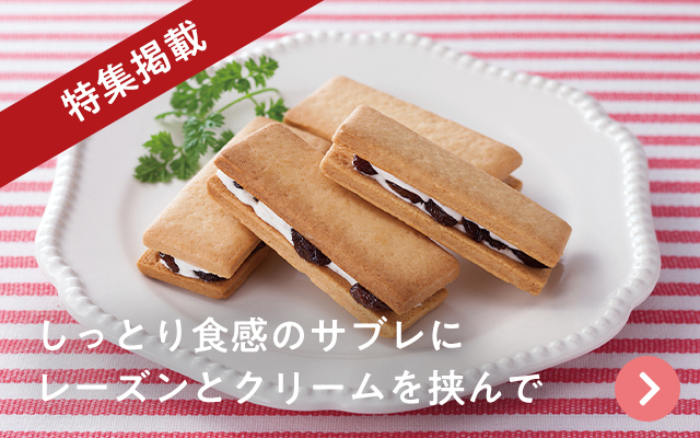 国産小麦粉、提携生産者のバター、砂糖、鶏卵、レーズンなどを使用。サブレとクリーム、レーズンの組み合わせが絶妙です。