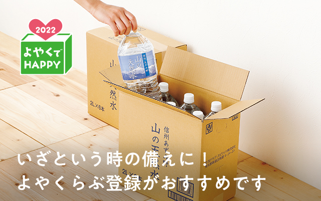 防災用飲料水として回転備蓄にもおすすめ。「信州たのめの里・森が育てた天然水」(製造元:信州エコプロダクツ(株)) か「信州あずみ野 山の天然水」(製造元:ゴールドパック(株)あずみ野工場)のいずれかをお届け。連続して届く場合があります。銘柄は選べません。ともにまろやかで飲みやすい軟水で賞味期限730日。「信州たのめの里・森が育てた天然水」は長野県塩尻市郊外の「たのめの里」の深井戸で地下250mから採水し加工。75℃加熱で殺菌をしてからフィルターで除菌しました(硬度48mg/L)。「信州あずみ野 山の天然水」は北アルプスのふもと、信州・安曇野(あずみの)のナチュラルミネラルウォーター。安曇野に工場をもつ製造元の井戸で地下190mからくみ上げています(硬度19mg/L)。