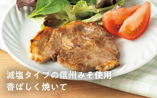 既存の豚肉みそ漬(肩ロース)から塩分を44%カットした減塩タイプ。提携生産者の豚肉と味噌、消費材の麹甘酒を使用。味噌に麹甘酒で味付けすることで塩分カットを実現。【生産者のコメント】 「豚肉みそ漬け(肩ロース)」の減塩タイプが新登場。生活クラブの提携生産者が塩分を減らして作った信州みそをはじめ、純米酢、甘酒などを使用しています。ほどよい酸味と甘みを加えることで、塩分をおさえながらも深い味わいに仕上げました。フライパンでじっくり焼くほか、好みの野菜とホイル焼きにするのもおすすめです。 (株)平田牧場 本間 平盛さん