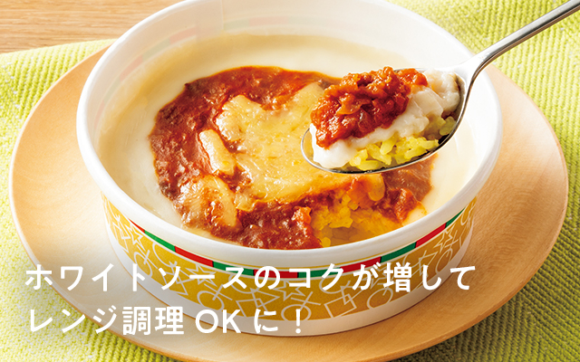 ターメリックライスにバターを使ったホワイトソースとミートソースをかけ、ゴーダチーズをトッピング。ターメリックライスは生活クラブ指定米と提携生産者の鶏ガラスープを使用。ミートソースは提携生産者の牛肉とケチャップ、ウスターソース、ビートグラニュー糖を使用しています。レンジで温めるだけ。【生産者のコメント】 既存品「ミラノ風ドリア」が一層コク深い味わいになりました。ターメリックライスには生活クラブ指定米を使用。牛乳、生クリームにバターを新たに加えたホワイトソースと、玉ねぎの甘みをいかしたミートソースをかけました。容器を紙に変更してレンジ調理できるようになり、調理時間を従来の約1/3に短縮できます。 全国農協食品(株) 要 秋蘭さん リニューアルに伴い、既存の「ミラノ風ドリア」は取組みを終了しました。