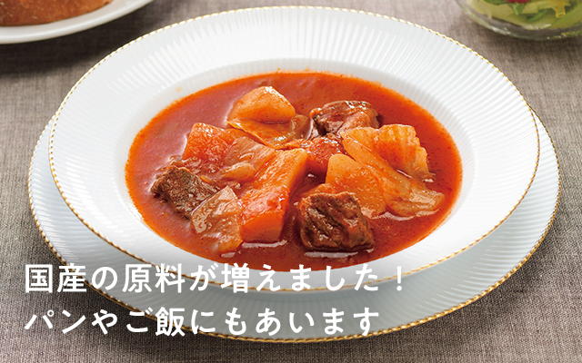 提携生産者の牛肉と馬鈴薯、人参を大きめにカットし、キャベツ、玉ねぎを煮込んだトマトベースの具だくさんスープ。牛肉の旨味が溶け込み、酸味とコクがほどよく調和しています。4人分。缶切りが必要です。【生産者のコメント】 生活クラブの提携生産者の牛肉をはじめ、国産のじゃがいも、人参、キャベツ、玉ねぎなどが入ったトマトベースのスープです。アメリカ産千切りビーツを国産のビーツペーストに変更。全体の原料配合を調整し、既存品に近い味わいに調整しました。トマトの酸味と牛肉のコクが絶妙です。耐熱容器に移してレンジで温めてください。約4人分。 全国農協食品(株) 山口 真由美さん リニューアルに伴い、既存の「ボルシチ缶」は取組みを終了しました。