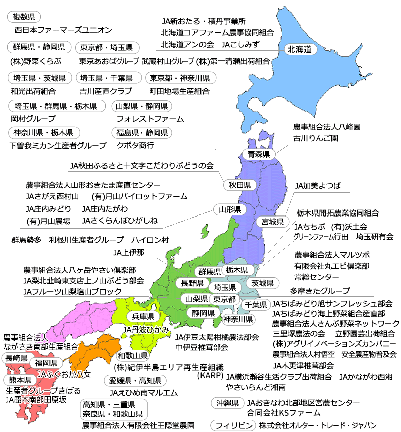 生活クラブは、全国67の「提携産地」と、①JA全農青果センター株式会社 ②生活クラブ連合会 ③生産者 との三者からなる「提携合意書」を締結しています。